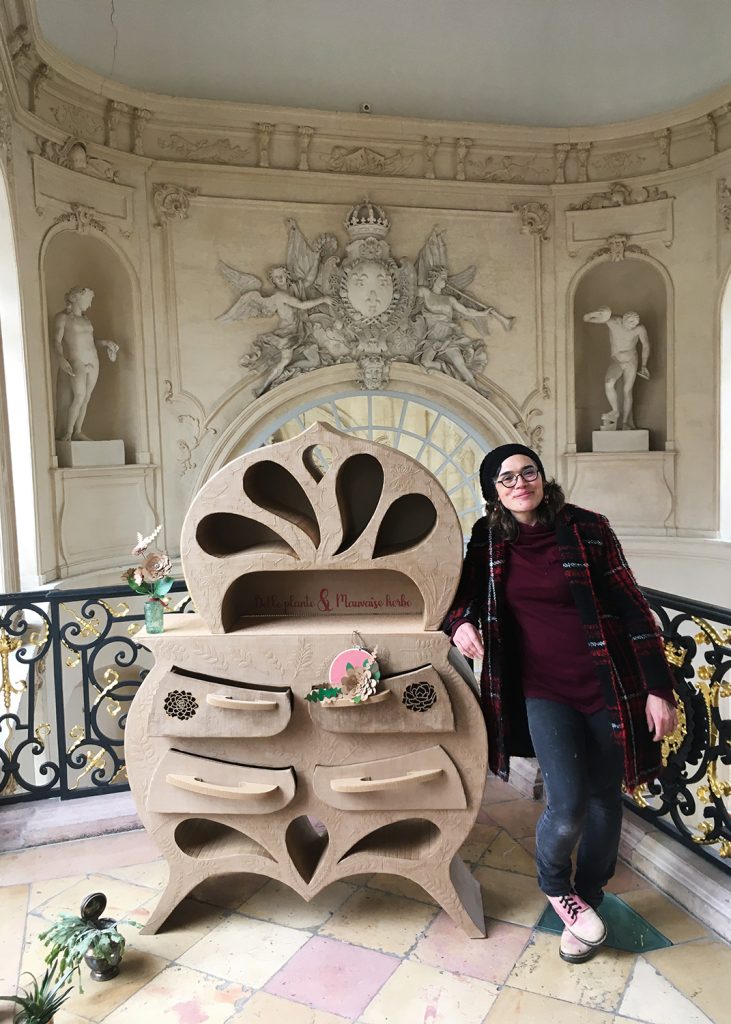 A l’esquisse qui devient dessin ciselé pour être tranché finement dans la matière, pour finir en dentelle kraftée ! C’est ainsi que vous me rencontrerez au détour d’une expo artisanale avec des créations uniques ou au travers d’une vitrine de boutique avec des meubles sur mesure, au milieu d’une pièce de théâtre sous forme de mobilier rêveur, accroché à un mur avec des miroirs ou tableaux aux couleurs qui piquent les yeux !