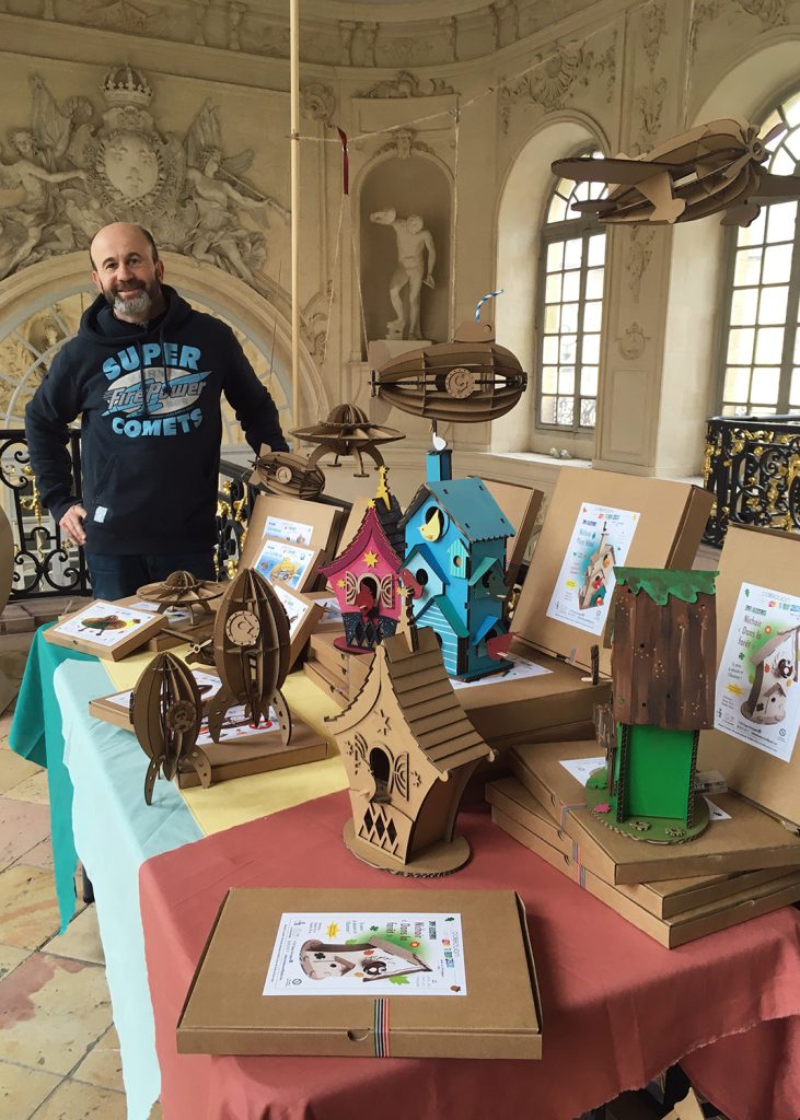 C’est sur l’idée originale d’Hermine Salvucci que j’ai eu envie de créer une gamme de Kits créatifs et divers objets de décoration en carton.